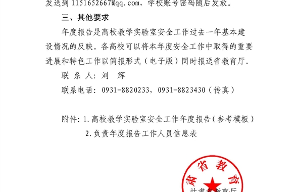 甘肅省教育廳關(guān)于做好2018年度高校教學(xué)實(shí)驗(yàn)室安全工作年度報(bào)告的通知