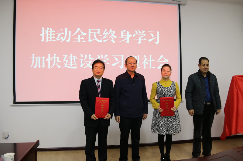 啟動儀式對獲得2017年我市榮獲全國、全省“百姓學(xué)習(xí)之星”“終身學(xué)習(xí)品牌項目”“優(yōu)秀成人繼續(xù)教育院校(培訓(xùn)機構(gòu))”等獲獎個人和單位進(jìn)行了表彰。市教育局局長李忠民、武威職業(yè)學(xué)院副院長翟存祥對獲獎單位和個人進(jìn)行了頒獎。市教育局職成教科負(fù)責(zé)人李學(xué)德宣讀成立“武威市社區(qū)教育指導(dǎo)服務(wù)中心”的文件,由市教育局局長李忠民、武威職業(yè)學(xué)院副院長翟存祥為“武威市社區(qū)教育指導(dǎo)服務(wù)中心”揭牌。張應(yīng)偉對《武威市教育局等九部門<關(guān)于進(jìn)一步推進(jìn)社區(qū)教育發(fā)展意見的實施方案》文件精神進(jìn)行了傳達(dá)。