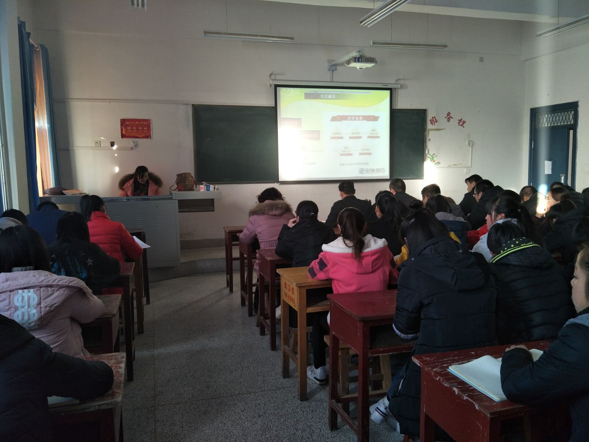 王靜以《不忘初心、牢記使命,深入學(xué)習(xí)黨的十九大會議精神》為題,從大會盛況及主要成果、十九大報告主要精神和亮點、黨章修改的主要內(nèi)容三個方面宣講黨的十九大報告,領(lǐng)悟黨的十九大精神。