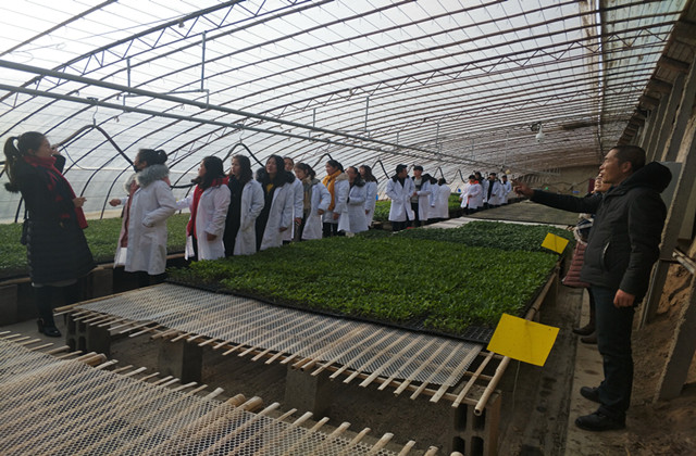 金大鵬專業(yè)合作社張經(jīng)理帶領(lǐng)師生參觀了自動(dòng)化育苗生產(chǎn)車間、育苗大棚等。參觀過(guò)程中,張經(jīng)理向?qū)W生詳細(xì)介紹了自動(dòng)化育苗的流程、自動(dòng)化灌溉設(shè)施、引進(jìn)的蔬菜新品種、溫室管理新技術(shù)等。藍(lán)天花卉公司袁經(jīng)理向?qū)W生介紹了常見(jiàn)的花卉品種及生活習(xí)性,學(xué)生們邊走邊看邊記,學(xué)習(xí)熱情異常高漲,真正實(shí)現(xiàn)了在做中學(xué),學(xué)中做。