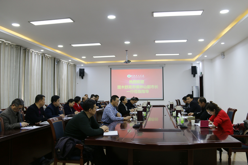 3月6日下午,第三師圖木舒克市人民政府副市長侯林山一行四人組成的考察團到我院考察交流。武威市政府副秘書長宮平,學院黨委副書記趙明,副院長王永緒、田迎春,相關部門負責同志陪同考察。