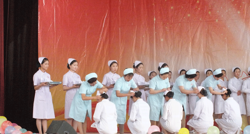 在慶祝活動中,2015級畢業(yè)生代表進行“心肺復蘇技術”及“右踝關節(jié)扭傷包扎技術”表演, 舉行了文藝演出,向全體觀眾展示了護理系學生的精神風貌與才藝。