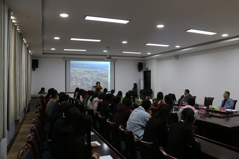 座談會上,田迎春代表全院師生對海梅一世大學到訪學院表示歡迎,對省國際交流與合作服務(wù)中心對學院的關(guān)心表示感謝,并向來訪客人簡要介紹了武威文化歷史、學院建設(shè)發(fā)展情況、學院國際交流與合作開展情況。來訪客人對學院近年來的巨大發(fā)展表示贊賞,對學院國際交流與合作開展工作表示肯定。Ana女士通過PPT展示介紹了海梅一世大學,希望雙方進一步進行合作。賓主雙方還就校際交流、語言培訓、赴西班牙專升碩留學項目等共同關(guān)心的問題進行了深入交流。