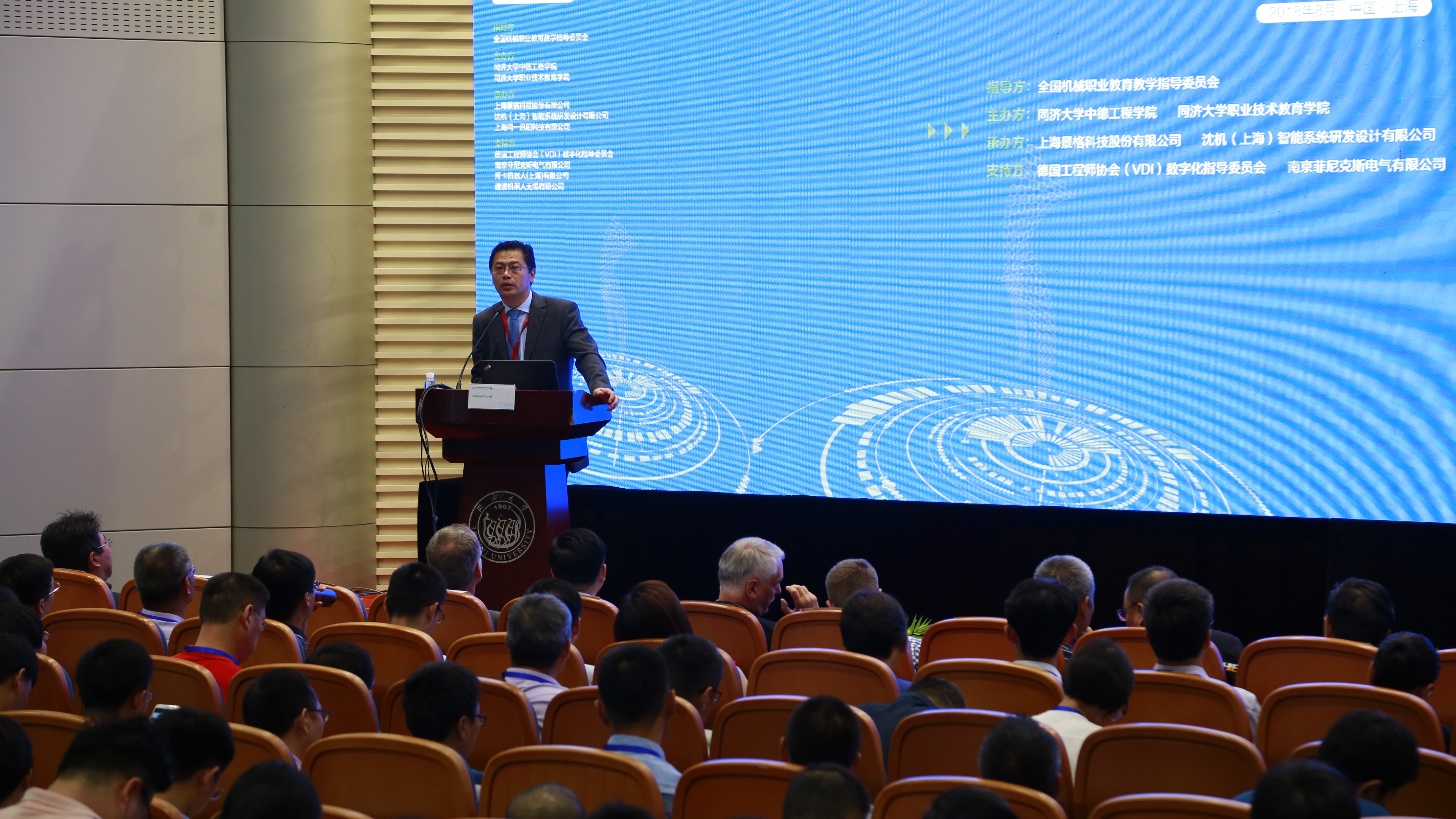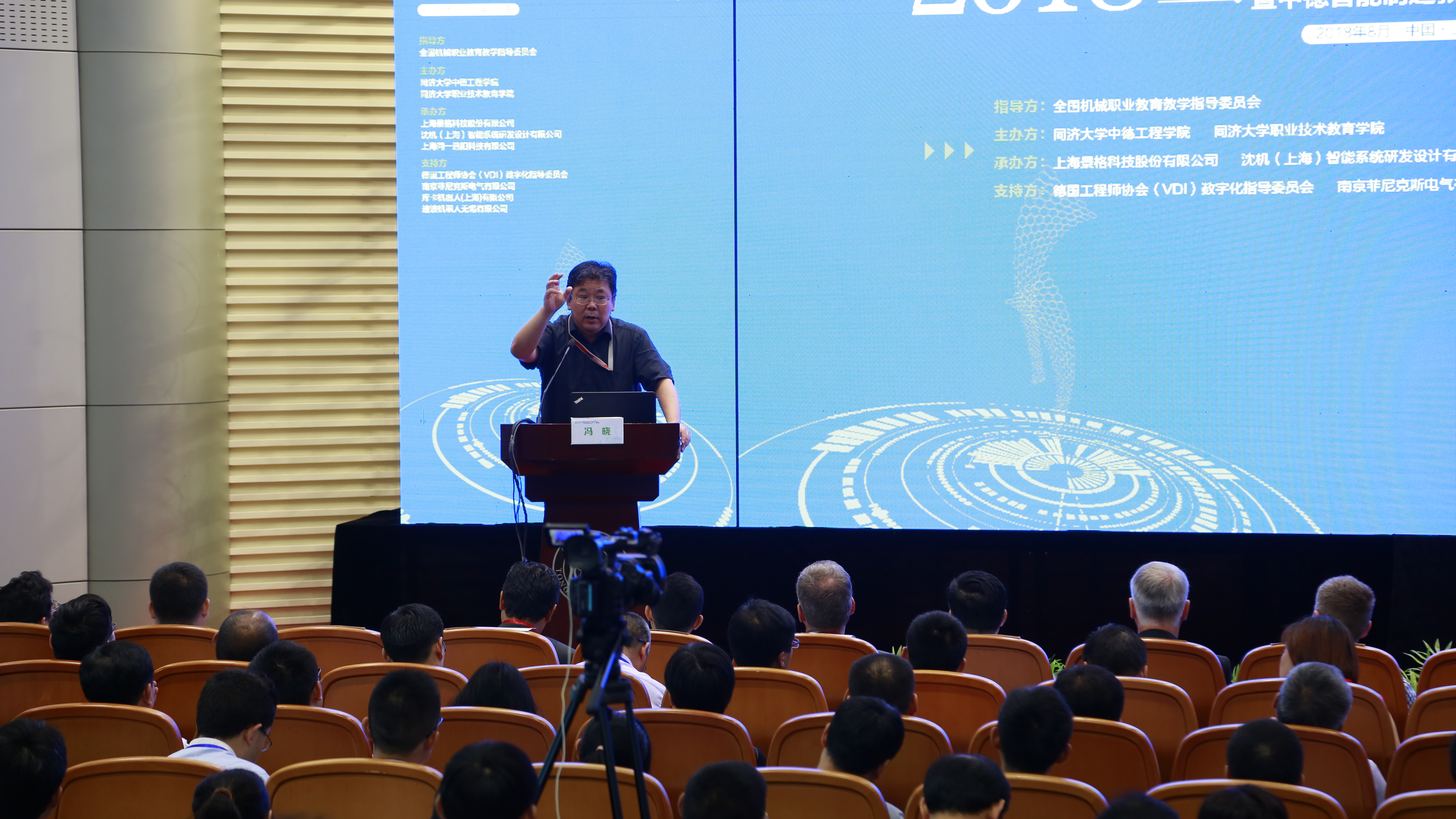 ??? 本屆論壇以全國(guó)機(jī)械職業(yè)教育教學(xué)指導(dǎo)委員會(huì)為指導(dǎo)單位,同濟(jì)大學(xué)中德工程學(xué)院和同濟(jì)大學(xué)職業(yè)技術(shù)教育學(xué)院聯(lián)合中德智能制造教育聯(lián)盟主辦,由上海景格科技股份有限公司、沈機(jī)(上海)智能系統(tǒng)研發(fā)設(shè)計(jì)有限公司、上海同一迅陽(yáng)科技有限公司承辦。以及德國(guó)工程師協(xié)會(huì)(VDI)數(shù)字化指導(dǎo)委員會(huì)、南京菲尼克斯電氣有限公司、庫(kù)卡機(jī)器人(上海)有限公司、速波機(jī)器人無錫有限公司等企業(yè)為本次論壇提供了產(chǎn)教融合實(shí)踐之道的各項(xiàng)支持。本屆論壇得到國(guó)內(nèi)外200多所在智能制造相關(guān)專業(yè)領(lǐng)域優(yōu)秀的中高職、應(yīng)用型本科院校的高度關(guān)注和積極響應(yīng),近300位校領(lǐng)導(dǎo)、職教專家、知名企業(yè)代表等齊聚一堂,共謀深化智能制造產(chǎn)教融合的創(chuàng)新之道。