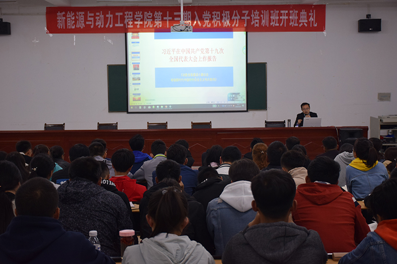 10月14日晚,新能源學(xué)院辦公室黨支部書記任陶在明德樓001教室作學(xué)習(xí)黨的十九大精神主題報告,98名入黨積極分子和45名發(fā)展對象認(rèn)真聆聽了此次報告。