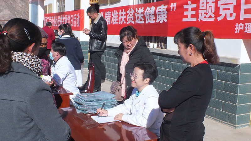為深入學習宣傳貫徹黨的十九大精神及健康扶貧等惠民政策,減少出現(xiàn)“因病致貧”、“因病返貧”,11月23日,護理系黨總支組織黨員教師到我院精準扶貧點古浪縣黑松驛鎮(zhèn)尚家臺村開展“健康扶貧,送醫(yī)送藥”主題黨日活動。