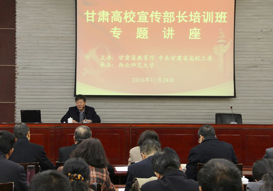 11月24日至25日,由甘肅省教育廳、甘肅省高校工委主辦,西北師范大學承辦的甘肅高校宣傳部長培訓班在西北師大舉辦。全省45所高校宣傳部(新聞中心)負責人參加培訓。我院宣傳統(tǒng)戰(zhàn)部部長王繼林參加培訓。