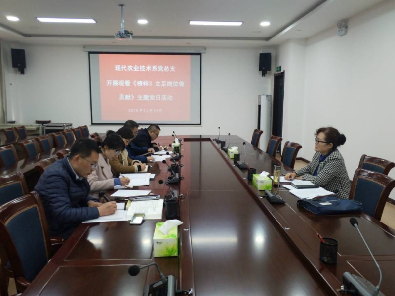 11月19日下午,現(xiàn)代農(nóng)業(yè)技術(shù)系黨總支全體黨員在行樹樓二樓會(huì)議室開展了觀看《榜樣3 立足崗位做貢獻(xiàn)》主題當(dāng)日活動(dòng)。