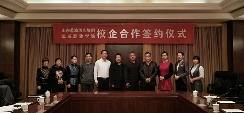 洽談結(jié)束后,潘從民代表武威職業(yè)學(xué)院與山東藍(lán)海酒店集團(tuán)完成了校企合作簽約。