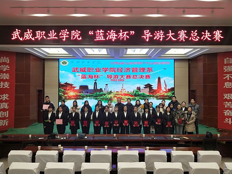 2018年12月28日,武威職業(yè)學(xué)院經(jīng)濟(jì)管理系“藍(lán)海杯“導(dǎo)游大賽決賽在大學(xué)生活動中心“菁英廳”圓滿落幕。此次活動是甘肅省職業(yè)教育骨干專業(yè)旅游管理專業(yè)建設(shè)活動之一。