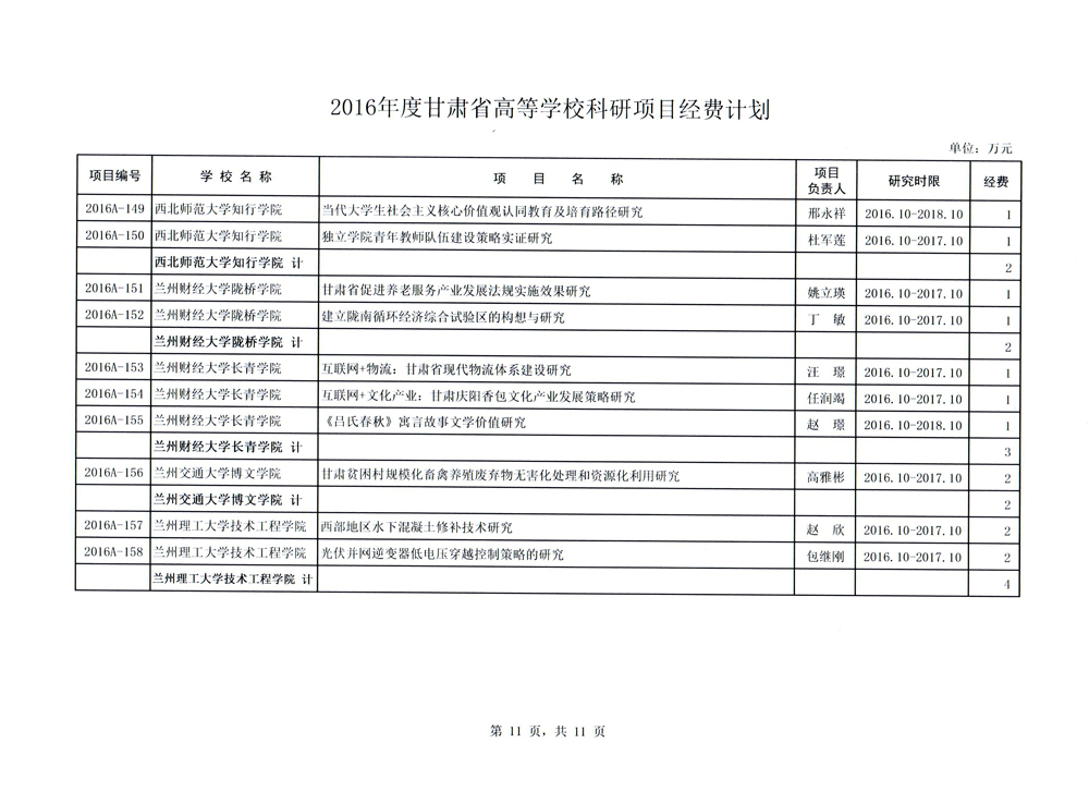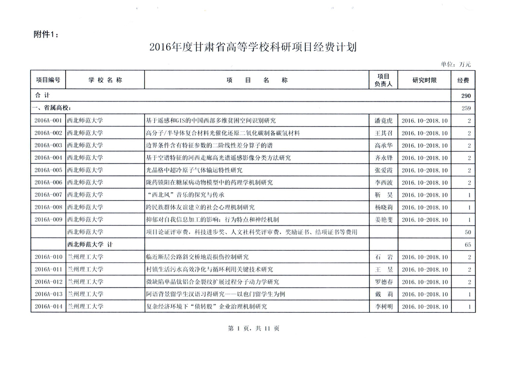 轉(zhuǎn)發(fā)甘肅省財政廳 教育廳文件 關(guān)于下達2016年度高校導師科研經(jīng)費和“2011計劃”補助經(jīng)費的通知