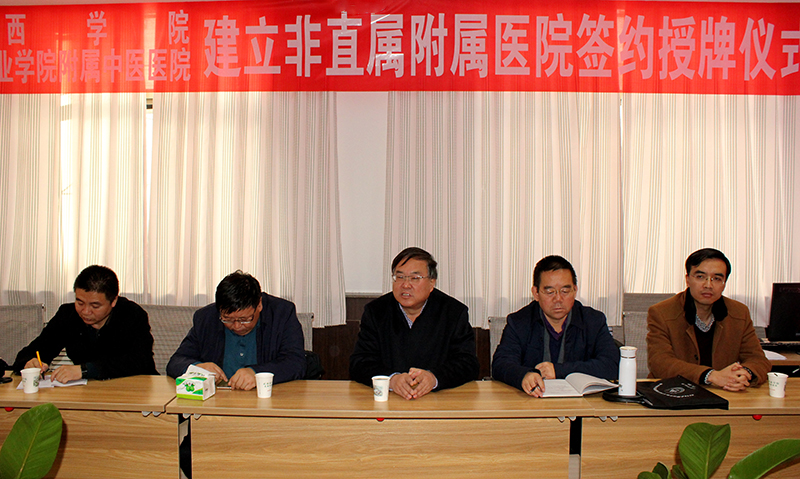 河西學院副校長張勇,教務(wù)處長趙柱,臨床醫(yī)學院院長薛國慶,教務(wù)處副處長楊彬,臨床醫(yī)學院副院長田永衍一行5人與武威職業(yè)學院黨委委員、副院長翟存祥,學院附屬中醫(yī)醫(yī)院黨委書記陳鋼,院長曹生有,副院長毛照海、宗武三、侯高,工會主席李文輝共同出席了簽約授牌儀式。
