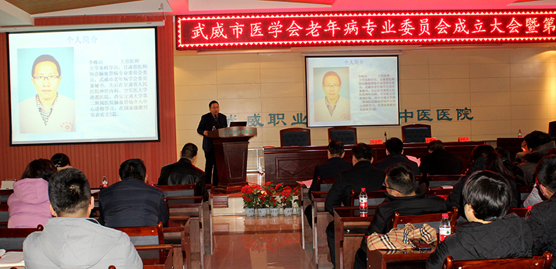 來自武威市及古浪縣、民勤縣、涼州區(qū)的老年病學(xué)術(shù)委員會主任委員、副主任委員、常務(wù)委員、委員及附屬中醫(yī)院醫(yī)護(hù)人員100多人參加了學(xué)術(shù)委員會成立會議,并聆聽了學(xué)術(shù)交流會。