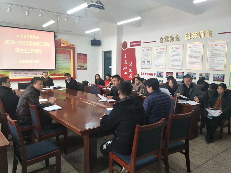 2月26日,人文藝術(shù)教育系全體班主任和學(xué)生工作管理人員在勵(lì)勤樓209會(huì)議室,召開新學(xué)期學(xué)生管理工作會(huì)議,會(huì)議由系黨總支書記胡靜峰同志主持,系副主任李欣做具體工作安排。