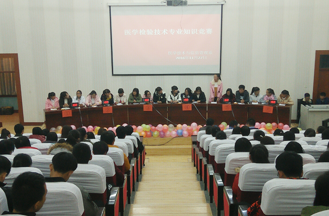 為提高學(xué)生對專業(yè)知識的掌握水平,培養(yǎng)主動學(xué)習(xí)的良好學(xué)風(fēng),11月27日晚,醫(yī)學(xué)技術(shù)與信息管理系在尚德樓正德廳舉行醫(yī)學(xué)檢驗技術(shù)專業(yè)知識競賽。系主任楊如松,學(xué)院組織人事處副處長魏全民,系全體行政人員,醫(yī)學(xué)檢驗技術(shù)教研室主任、任課教師及檢驗專業(yè)全體班主任、學(xué)生代表參加本次活動。
