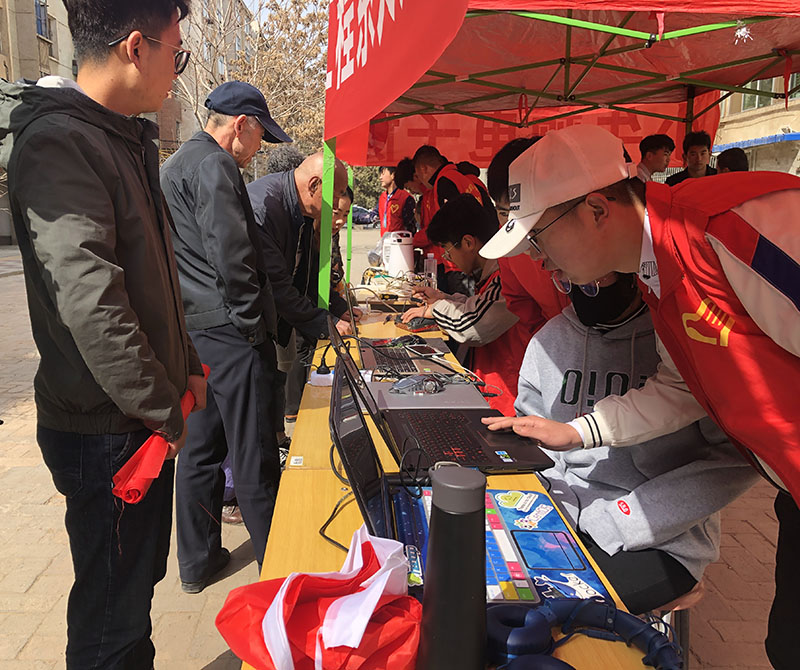 3月23日上午,我系小牛頓電子協(xié)會(huì)和計(jì)算機(jī)協(xié)會(huì)的志愿者們,來到泰安小區(qū)開展了以“發(fā)揚(yáng)雷鋒精神,科技服務(wù)進(jìn)社區(qū)”為主題的家電、電腦義務(wù)維修活動(dòng)。志愿者們對(duì)小區(qū)居民送來的電水壺、電飯煲、微波爐、影碟機(jī)等家電進(jìn)行了維修,受到了小區(qū)居民的歡迎。志愿者們還不辭辛苦,上門對(duì)有故障的電腦進(jìn)行重裝系統(tǒng)、更新驅(qū)動(dòng)等服務(wù),師生們認(rèn)真負(fù)責(zé)、一絲不茍的精神得到了居民們的贊許。
