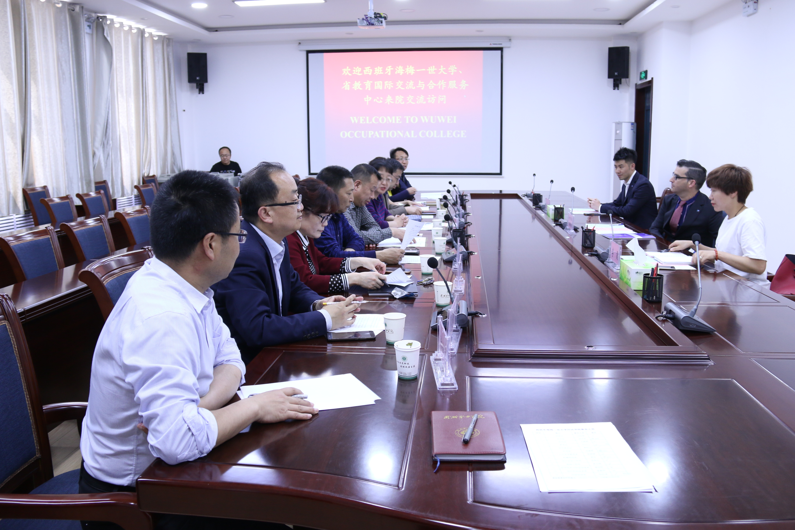 訪問期間,賓主雙方進(jìn)行了交流座談。黨政辦公室、宣傳統(tǒng)戰(zhàn)部、教務(wù)處、招生就業(yè)處、護(hù)理系、人文藝術(shù)教育系、醫(yī)學(xué)技術(shù)與信息管理系、電子信息工程系、能源工程系、現(xiàn)代農(nóng)業(yè)技術(shù)系、機(jī)械制造系、經(jīng)濟(jì)管理系負(fù)責(zé)人以及國(guó)際合作與交流處有關(guān)教師參加座談。副院長(zhǎng)田迎春參加并主持交流座談會(huì)。