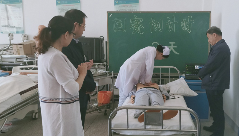 院領(lǐng)導(dǎo)高度重視此次比賽,全力支持大賽工作,時(shí)刻關(guān)注賽前訓(xùn)練情況。學(xué)院黨委書記趙明、副院長(zhǎng)翟存祥、教務(wù)處處長(zhǎng)仲生仁多次到訓(xùn)練現(xiàn)場(chǎng)觀看選手操作,并提出指導(dǎo)性的意見和建議。趙書記充分肯定了老師們的辛勤付出,要求輔導(dǎo)教師在訓(xùn)練中一定要堅(jiān)持高標(biāo)準(zhǔn)、嚴(yán)要求;鼓勵(lì)選手發(fā)揮潛能,賽出水平,實(shí)現(xiàn)新的突破。護(hù)理系成立了以黨總支書記張建輝、系主任韓曉萍牽頭,由專業(yè)教師組成大賽輔導(dǎo)小組,認(rèn)真解讀競(jìng)賽規(guī)程,周密安排訓(xùn)練計(jì)劃,強(qiáng)化理論知識(shí),細(xì)化操作項(xiàng)目,力爭(zhēng)在此次大賽中取得好成績(jī)。