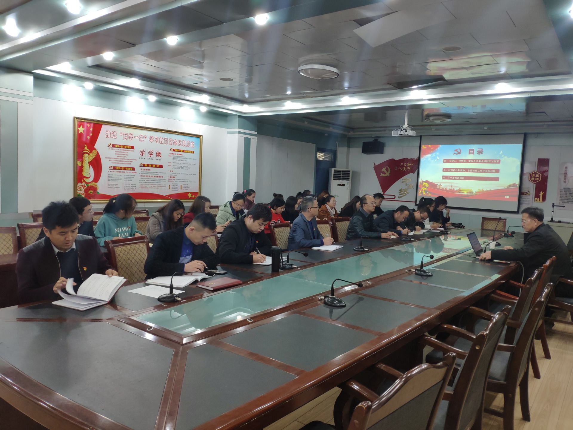 張開禮通過分析“不忘初心、牢記使命”主題教育的重大意義,指出“初心“、”使命”的豐富內涵,身為中國共產(chǎn)黨員要堅守馬克思主義信仰、堅持黨領導一切工作、堅持全心全意為人民服務。張開禮指出,全體黨員要堅持讀原著、學原文、悟原理,在學深悟透習近平新時代中國特色社會主義思想上下功夫;以 “三會一課”、主題黨日等為重點,全面加強理論學習,結合主題教育重點解決好理想信念、責任擔當和執(zhí)行落實等問題上踐行初心和使命。