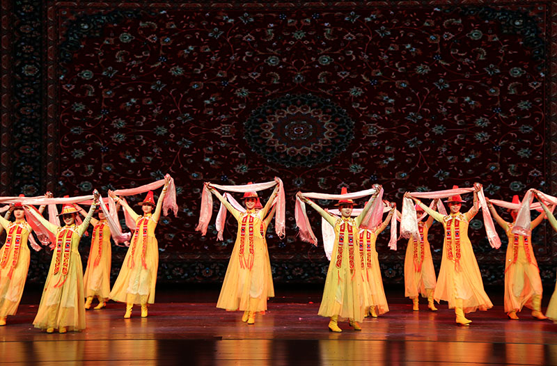 大型歌舞劇《裕固風(fēng)華》是河西學(xué)院師生歷經(jīng)三年精心打造的首部原創(chuàng)教學(xué)劇目,是教育部、文化和旅游部、財(cái)政部高雅藝術(shù)進(jìn)校園活動(dòng)省級巡演劇目,是省委宣傳部和省文旅廳“春綠隴原”展演劇目,是甘肅省學(xué)校美育改革與發(fā)展重大項(xiàng)目、甘肅省高校美育教育舞臺示范精品。全劇由《序》《東遷》《家園》《傳說》《婚禮》五個(gè)篇章組成,以裕固族傳統(tǒng)民歌、舞蹈、民俗為載體進(jìn)行創(chuàng)作和改編,以情景歌舞的形式表現(xiàn)裕固族的歷史變遷和民俗文化,以講述、吟誦、歌舞的手法,再現(xiàn)了裕固族的發(fā)展歷史和多姿多彩的獨(dú)特文化,以高品位的藝術(shù)水準(zhǔn)弘揚(yáng)、展現(xiàn)了中華民族傳統(tǒng)文化的優(yōu)良基因和時(shí)代活力。