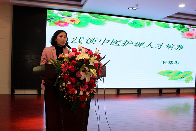 程萃華主講的題目是:《淺談中醫(yī)護理人才培養(yǎng)》。她說:中醫(yī)護理人才培養(yǎng)重點要做好以下幾個方面的工作:一要加強新入職護理人員的崗前培訓,注重中醫(yī) “仁、和、精、誠”核心價值觀的人文素養(yǎng)的培育;二要加強中醫(yī)基本理論和中醫(yī)操作技能培訓,用中醫(yī)理論指導中醫(yī)臨床護理工作;三要制定中醫(yī)護理人才引進計劃,著力引進高層次中醫(yī)護理人才,加大中醫(yī)護理人才的招聘比例;四要爭取醫(yī)院領導支持,落實中醫(yī)護理在人才引進和培養(yǎng)、教學科研、中醫(yī)護理技術推廣、中醫(yī)護理信息管理、重點??平ㄔO等方面的經費投入,保障醫(yī)院的中醫(yī)護理工作向前發(fā)展。