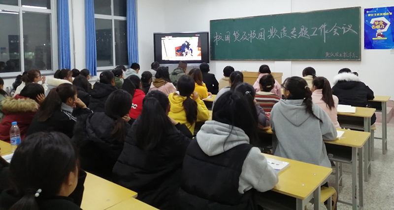會(huì)議重點(diǎn)學(xué)習(xí)關(guān)于校園貸典型案例、視頻資料,普及法律知識(shí),增強(qiáng)學(xué)生金融、網(wǎng)絡(luò)安全防范意識(shí);介紹有關(guān)校園欺凌、校園暴力的常識(shí)和造成的危害,增強(qiáng)學(xué)生的法制觀念。