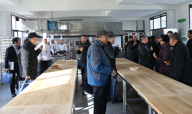 會議結束后,院領導與老同志們參觀了學院經濟管理系烹飪實訓中心,詳細了解了學院實訓室的建設發(fā)展情況,并與在場實習的學生親切交談,并在現場品嘗了學生親手制作的中西面點,離退休黨員們盛贊了烹飪教師的專業(yè)水平和同學們的動手實踐能力。他們一致表示,要永葆革命初心,堅定理想信念,深入學習貫徹習近平新時代中國特色社會主義思想,牢記共產黨員的責任與使命,關注學院發(fā)展并做好“關心下一代”工作,為學院的建設和發(fā)展獻言獻策。