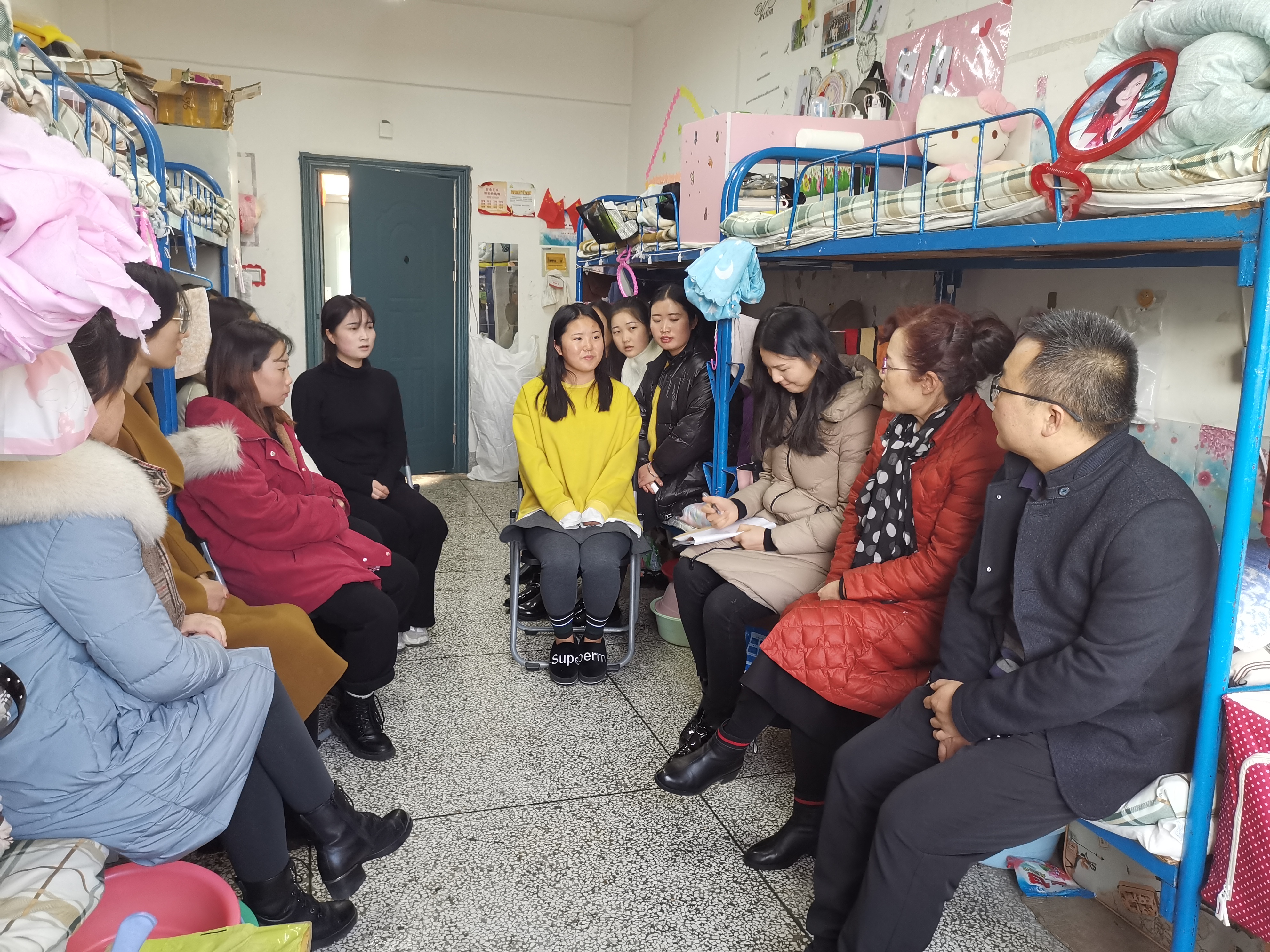 黨員在女生宿舍進行調研