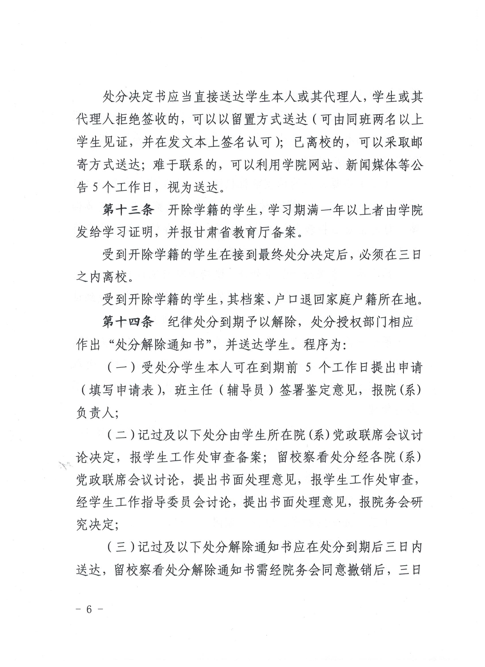 武威職業(yè)學(xué)院學(xué)生違紀(jì)處理規(guī)定