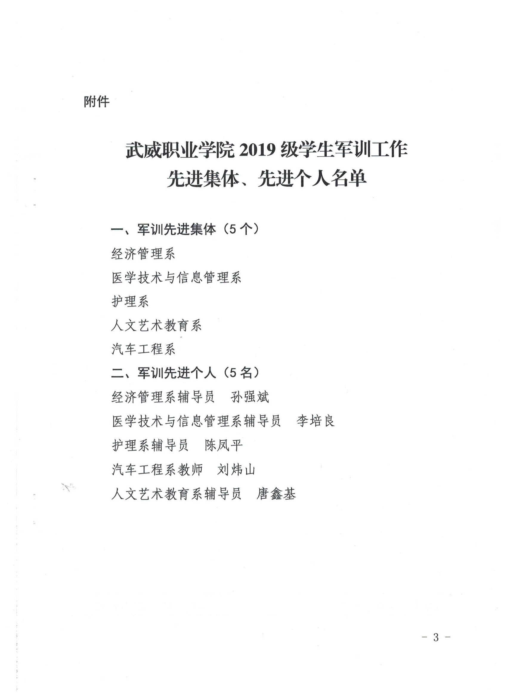 武威職業(yè)學(xué)院關(guān)于表彰2019級學(xué)生軍訓(xùn)工作先進集體、先進個人的決定
