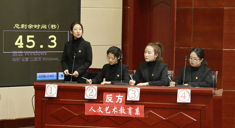 為慶祝中華人民共和國成立70周年,深入推進(jìn)“不忘初心、牢記使命”主題教育活動扎實(shí)開展,進(jìn)一步豐富校園文化生活,拓展大學(xué)生思辨能力,培養(yǎng)同學(xué)們的團(tuán)隊合作精神,提高學(xué)生綜合素質(zhì),展現(xiàn)青年學(xué)生昂揚(yáng)向上的青春風(fēng)采和精神風(fēng)貌,院團(tuán)委舉辦了學(xué)院第十一屆大專辯論賽。12月24日晚,辯論賽決賽在大學(xué)生活動中心菁英廳舉行,200多名師生觀看了比賽。
