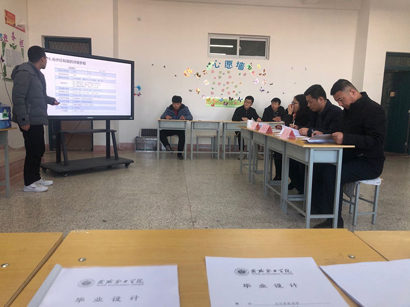 2019年12月17日上午,能源工程系在行樹樓403、405教室開展了2020屆畢業(yè)生畢業(yè)設(shè)計(jì)答辯活動(dòng),2020屆光伏發(fā)電技術(shù)與應(yīng)用專業(yè)全體畢業(yè)生分11個(gè)小組參加了本次畢業(yè)設(shè)計(jì)答辯。