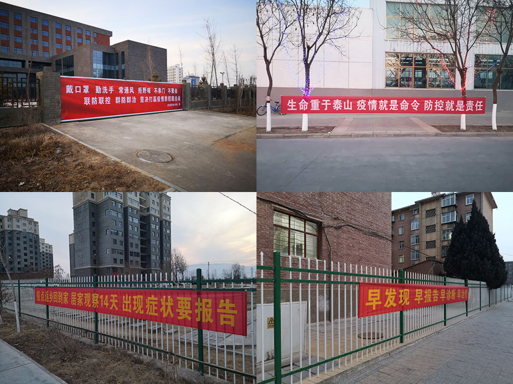 學(xué)院面向師生和社會人員,加強(qiáng)疫情防控內(nèi)外宣傳。在校園圍墻醒目位置設(shè)置內(nèi)容為:“戴口罩、勤洗手、常通風(fēng)、拒野味、不串門、不聚會”,“聯(lián)防聯(lián)控、群防群治、堅(jiān)決打贏疫情防控阻擊戰(zhàn)”等宣傳標(biāo)語;在校園內(nèi)、家屬區(qū)等地顯著位置設(shè)置:“生命重于泰山、疫情就是命令、防控就是責(zé)任”,“重科學(xué)、聽官宣、不信謠、不傳謠”,“疫點(diǎn)返鄉(xiāng)回到家、居家觀察14天、出現(xiàn)癥狀要報告”,“早發(fā)現(xiàn)、早報告、早診斷、早治療”等宣傳標(biāo)語、橫幅。通過線上線下、校內(nèi)校外全方位教育、宣傳、號召、引導(dǎo),營造了師生和社會人員高度重視、科學(xué)嚴(yán)謹(jǐn)、從我做起、同舟共濟(jì)嚴(yán)格防控疫情的濃厚氛圍和戰(zhàn)勝疫情的堅(jiān)定信心,為早日打贏疫情防控戰(zhàn)凝聚了共識、匯聚了強(qiáng)大的精神力量。