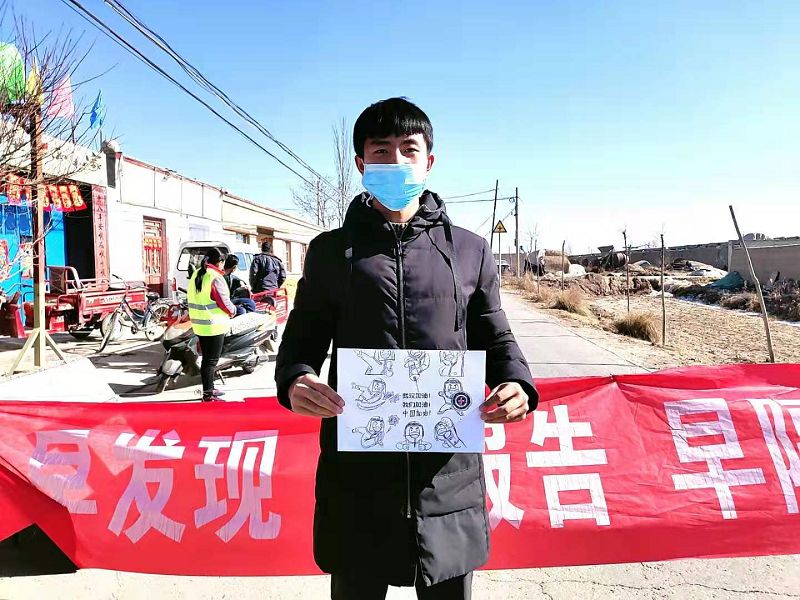 能源工程系2019級應(yīng)用化工大專班學(xué)生王浩楠,在武威市涼州區(qū)發(fā)放鎮(zhèn)新興村疫情防控工作站參加勸導(dǎo)防疫工作,主要在交通道路上對來往人員和車輛進(jìn)行排查登記,向村民宣傳疫情防護(hù)知識,在各隊(duì)會議室門口張貼宣傳橫幅,作為一名青年志愿者,為了守護(hù)家鄉(xiāng),也為了盡快打贏這場阻擊戰(zhàn),以實(shí)際行動踐行共青團(tuán)員的青春誓言。