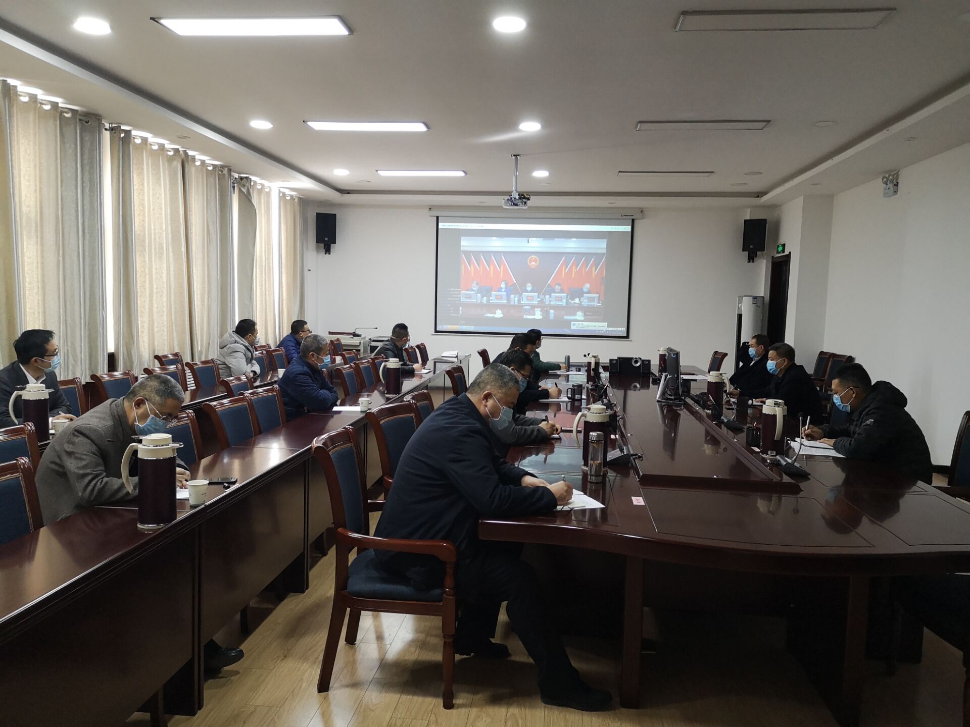 學(xué)院疫情聯(lián)防聯(lián)控領(lǐng)導(dǎo)小組組長學(xué)院黨委書記、院長趙明,領(lǐng)導(dǎo)小組副組長黨委副書記翟存祥,黨委委員、副院長王永緒、田迎春,黨委委員、紀委書記、監(jiān)察專員陳曉煜,黨委委員、副院長張開禮、王守云,領(lǐng)導(dǎo)小組辦公室成員通過“隴政釘”視頻方式參加了會議。