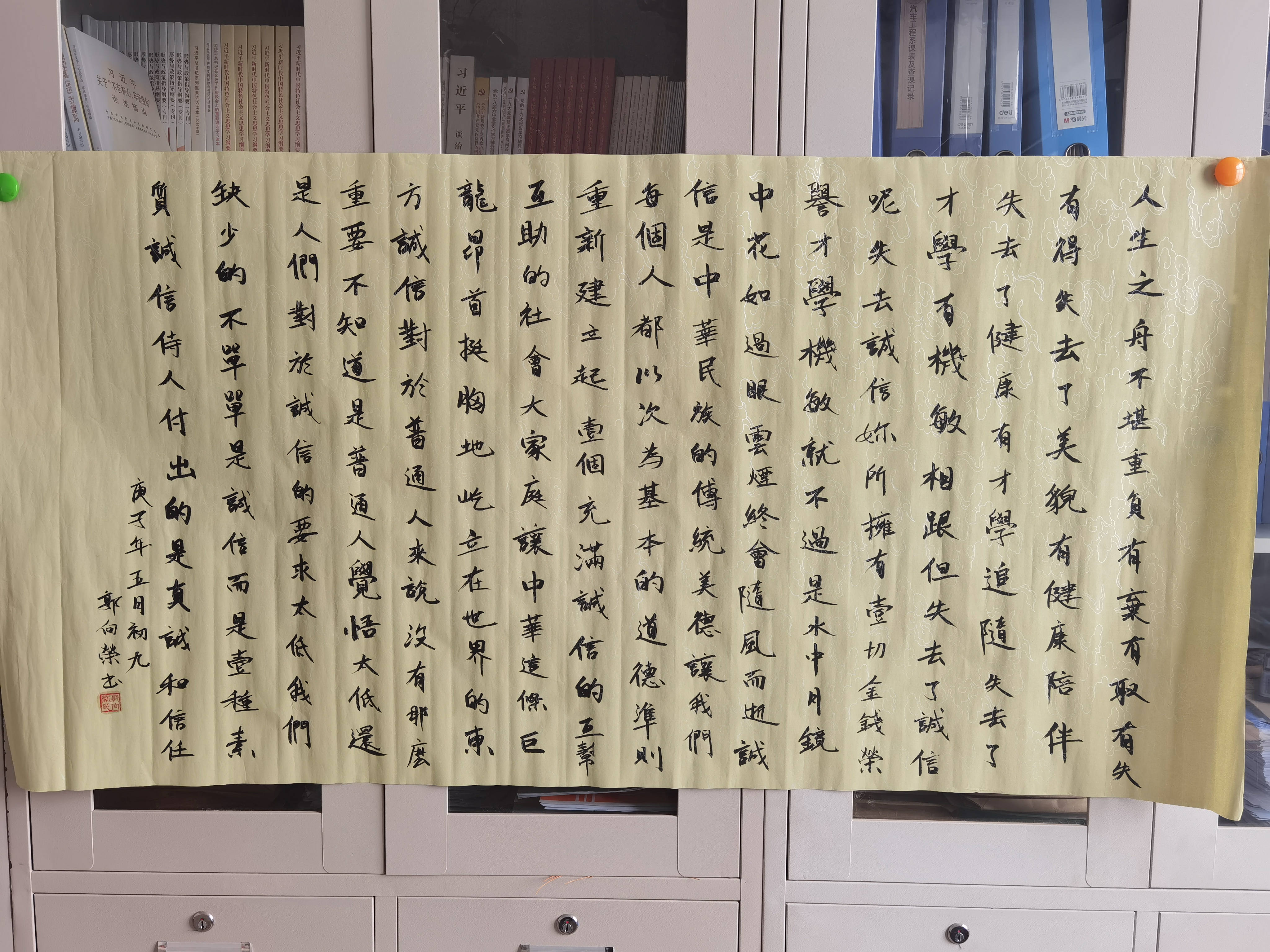 ? ? 為響應學院“以誠至信、受益終生、誠信還貸 、感恩社會”倡議書倡議,汽車工程系于6月14日舉辦為期一周的“誠信”主題書畫比賽,學生踴躍參賽,經(jīng)過學生會評審,最終確定推薦5件作品參加學院比賽。