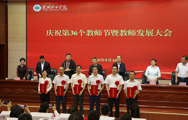 學(xué)院領(lǐng)導(dǎo)分別宣讀了《武威職業(yè)學(xué)院關(guān)于表彰獎勵2020年度優(yōu)秀教師、優(yōu)秀教育工作者的決定》《關(guān)于表彰學(xué)院2020年“教書育人楷?!鲍@得者的決定》《關(guān)于表彰學(xué)院2020年“我最喜愛的老師”獲得者的決定》《武威職業(yè)學(xué)院關(guān)于表彰獎勵語言文字推廣先進個人的決定》和《關(guān)于評定2020年院級“教學(xué)名師”“教學(xué)能手”“教學(xué)新秀”的決定》《關(guān)于聘任2020年院級專業(yè)(學(xué)科)帶頭人的決定》《武威職業(yè)學(xué)院關(guān)于評定2020年院級骨干教師的決定》。楊存忠教授和學(xué)院領(lǐng)導(dǎo)分別為獲獎?wù)哳C發(fā)榮譽證書。