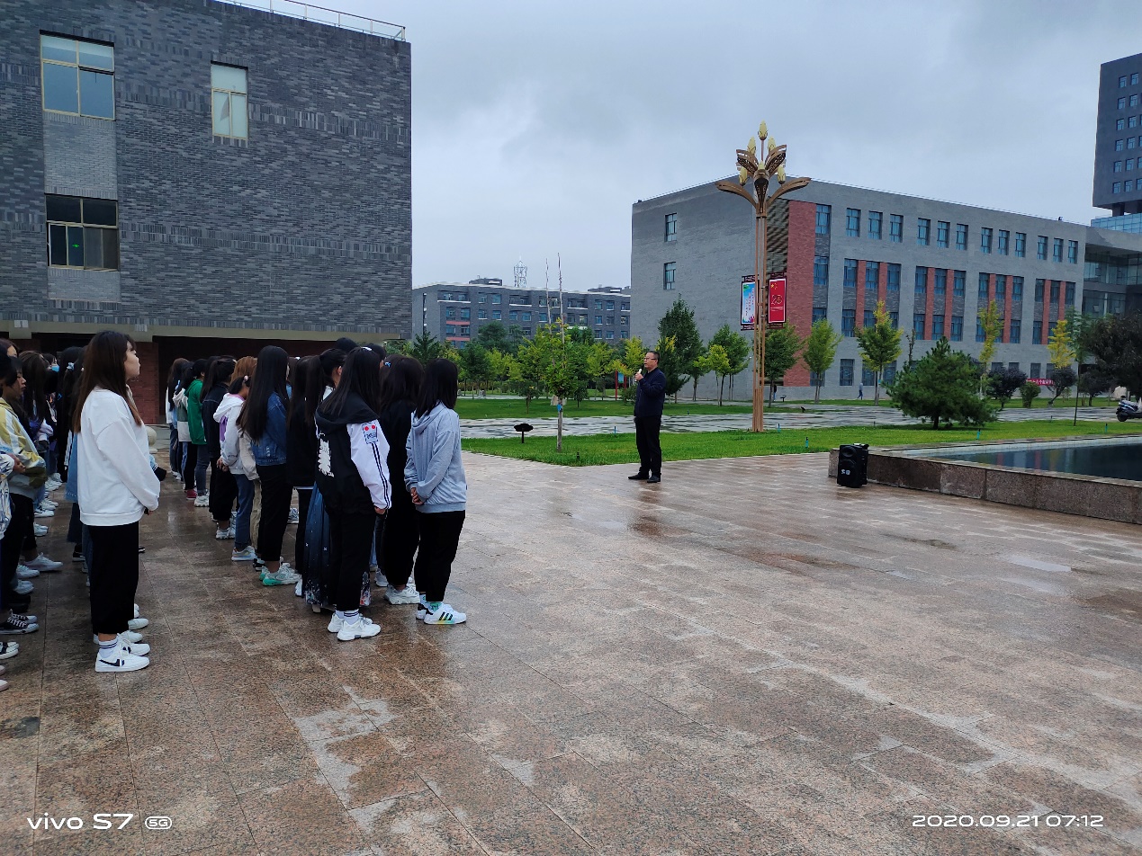 最后,魏潤明以“秋冬季節(jié),加強(qiáng)疫情防護(hù)”為題做了講話。他要求全體師生:一、嚴(yán)格日常管理。提醒學(xué)生早起以增強(qiáng)身體素質(zhì)、健康體魄,要重視自身健康素養(yǎng)和自我防護(hù)能力。二、嚴(yán)格執(zhí)行請銷假制度。各班主任對請假學(xué)生,須認(rèn)真核實情況,各班同學(xué)應(yīng)嚴(yán)格執(zhí)行請銷假制度。同時,他告誡2018級學(xué)生,抓住有利時機(jī),提前做好“專升本”復(fù)習(xí)工作,為圓滿完成2021屆畢業(yè)生就業(yè)工作,做好準(zhǔn)備。