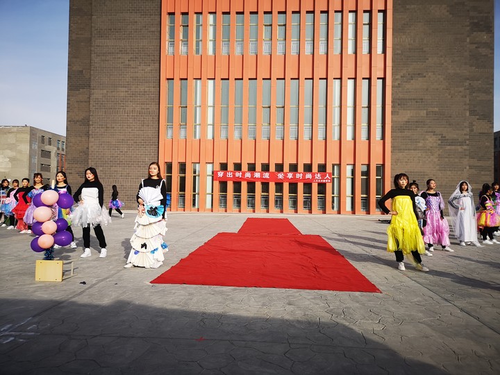 時(shí)裝秀由人文藝術(shù)教育系學(xué)前教育專業(yè)同學(xué)親手制作,再由同學(xué)們身著舊窗簾裁剪的長尾裙、廢撲克牌制作的“國王”套裝、廣告紙變身的鎧甲、塑料袋制成的披風(fēng)等等,跟著音樂的節(jié)奏,走起了“貓步”。通過這項(xiàng)活動(dòng)使同學(xué)們要保護(hù)環(huán)境,節(jié)約糧食,倡導(dǎo)全體同學(xué)樹立環(huán)保意識(shí)和節(jié)約意識(shí),希望環(huán)保理念能夠扎根于同學(xué)們的心中。