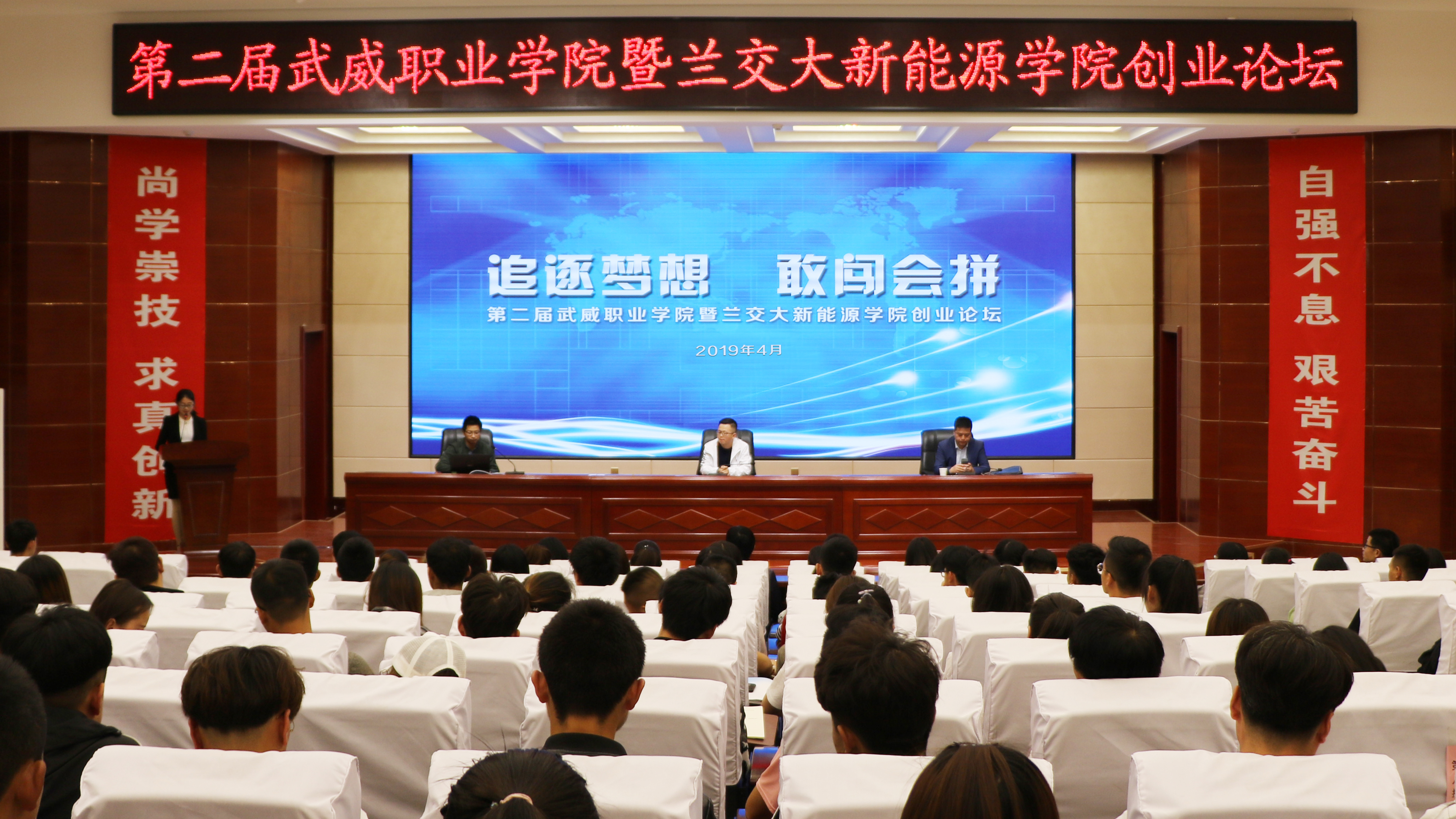 4月25日,雙創(chuàng)中心、院團(tuán)委在菁英廳舉辦第二屆武威職業(yè)學(xué)院暨蘭州交通大學(xué)新能源學(xué)院創(chuàng)業(yè)論壇,論壇旨在進(jìn)一步推動(dòng)學(xué)?!按蟊妱?chuàng)業(yè)、萬眾創(chuàng)新”工作,解析大學(xué)生創(chuàng)新創(chuàng)業(yè)相關(guān)政策,分享創(chuàng)業(yè)歷程,加強(qiáng)創(chuàng)新創(chuàng)業(yè)教育,鼓勵(lì)引導(dǎo)大學(xué)生開展創(chuàng)業(yè)實(shí)踐,提升創(chuàng)新創(chuàng)業(yè)服務(wù)水平,促進(jìn)我院大學(xué)生創(chuàng)新創(chuàng)業(yè)教育的深入開展。