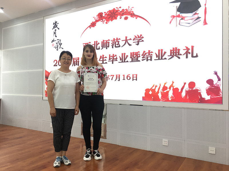 畢業(yè)典禮在留學(xué)生視頻播放中開(kāi)始,視頻內(nèi)容真實(shí),情真意切,如實(shí)記錄了留學(xué)生在華學(xué)習(xí)、生活的點(diǎn)點(diǎn)滴滴,展示了“一帶一路”合作倡議下教育對(duì)外開(kāi)放的成果。西北師范大學(xué)國(guó)際文化交流學(xué)院書(shū)記李東海宣讀結(jié)業(yè)生名單,我院19級(jí)5名留學(xué)生赫然在列。西北師范大學(xué)國(guó)際合作與交流處處長(zhǎng)王君朝向留學(xué)生祝詞,對(duì)留學(xué)生經(jīng)過(guò)努力學(xué)習(xí)、順利畢業(yè)表示衷心祝賀。留學(xué)生代表用流利漢語(yǔ)發(fā)言,既反映了漢語(yǔ)學(xué)習(xí)的效果,也表達(dá)了對(duì)漢語(yǔ)學(xué)習(xí)生活的留戀,對(duì)學(xué)校培育的感激,對(duì)中國(guó)政府和中國(guó)人民對(duì)外友好的真心感謝。留學(xué)生在激動(dòng)喜悅的心情中領(lǐng)取了結(jié)業(yè)證書(shū)及紀(jì)念品。
