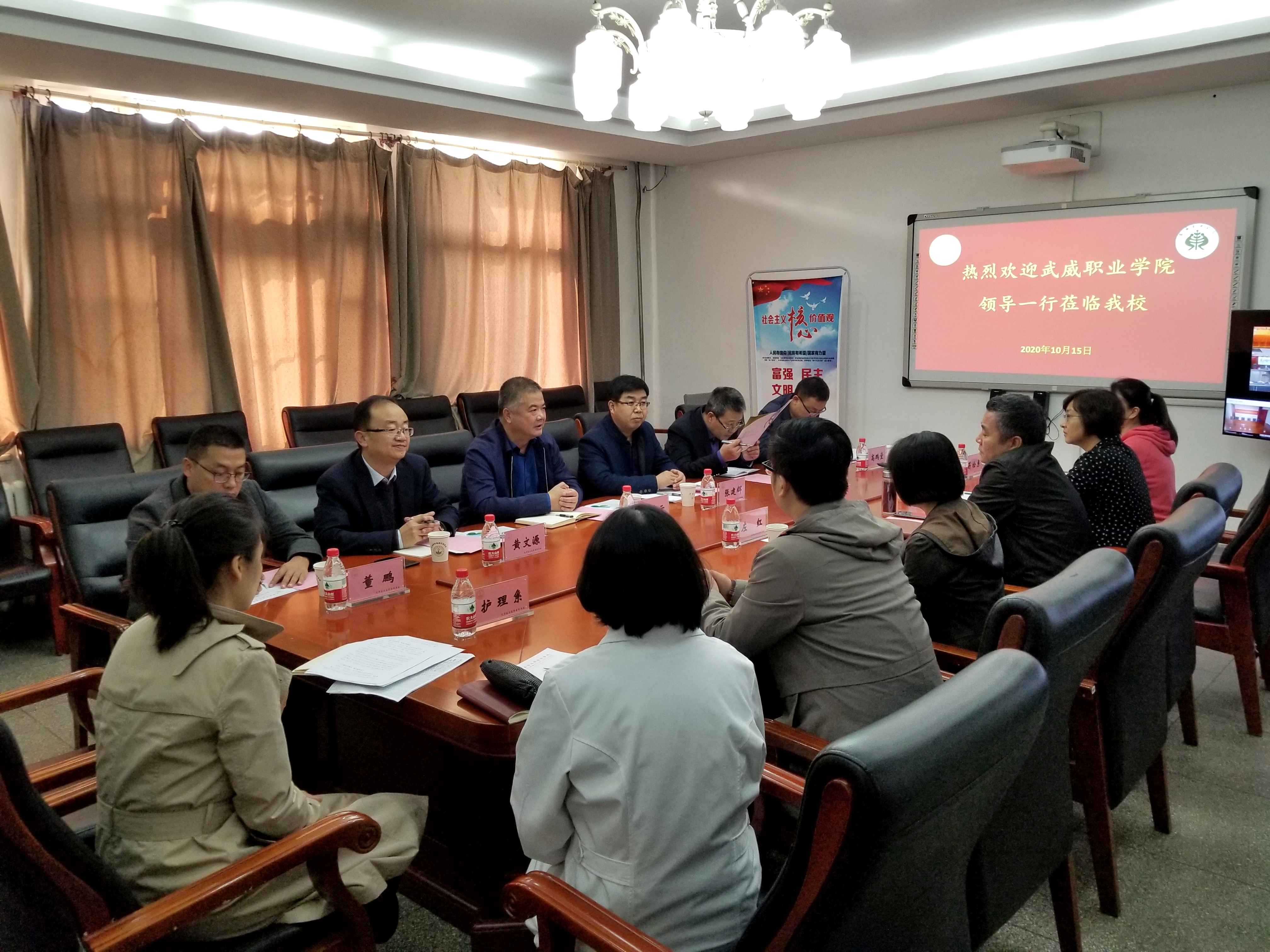 考察組一行分別與天津醫(yī)學(xué)高等??茖W(xué)校、天津職業(yè)大學(xué)進行了深入交流座談。天津醫(yī)高專是國家雙高校中唯一一所衛(wèi)生類學(xué)校,在座談會上,醫(yī)高專為學(xué)院醫(yī)藥衛(wèi)生類專業(yè)群建設(shè)提出了指導(dǎo)意見,介紹了醫(yī)高?!?.5+1.5”學(xué)制安排促就業(yè)、教學(xué)系黨委行政雙組長抓就業(yè)、就業(yè)工作經(jīng)費動態(tài)調(diào)整引領(lǐng)就業(yè)的工作機制,并就下一步共同培養(yǎng)師資、互派青年骨干教師交流學(xué)習(xí)達成共識。天津職業(yè)大學(xué)是《天津—甘肅職業(yè)教育協(xié)作實施方案》合作院校,在天津職大座談會上,兩校圍繞專業(yè)群組群、產(chǎn)業(yè)學(xué)院組建模式、教學(xué)模式、探索產(chǎn)業(yè)學(xué)院建設(shè)、混合所有制二級學(xué)院建設(shè)、就業(yè)工作“一對一”模式、學(xué)生管理經(jīng)驗和成果進行了分享與交流。劉斌校長出席并主持會議,對學(xué)院的雙高建設(shè)給予了特別關(guān)心與指導(dǎo)。他希望,雙方作為兄弟院校,要進一步加強交流合作,努力為推動?xùn)|西協(xié)作和武威職業(yè)教育高質(zhì)量發(fā)展做出新的更大的貢獻。
