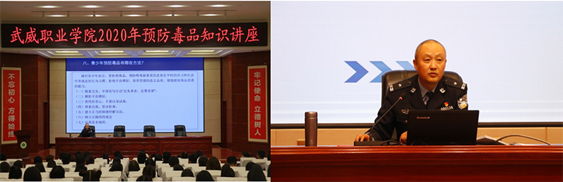 為進(jìn)一步加強(qiáng)學(xué)院毒品預(yù)防教育工作,不斷提高學(xué)生識(shí)毒、防毒、拒毒意識(shí),2020年11月6日下午,學(xué)院團(tuán)委邀請(qǐng)武威市公安局禁毒支隊(duì)政委、市禁毒辦副主任杜興林在菁英廳作了題為“健康人生 綠色無(wú)毒”預(yù)防毒品專題知識(shí)講座,師生代表共200余人聆聽(tīng)講座。