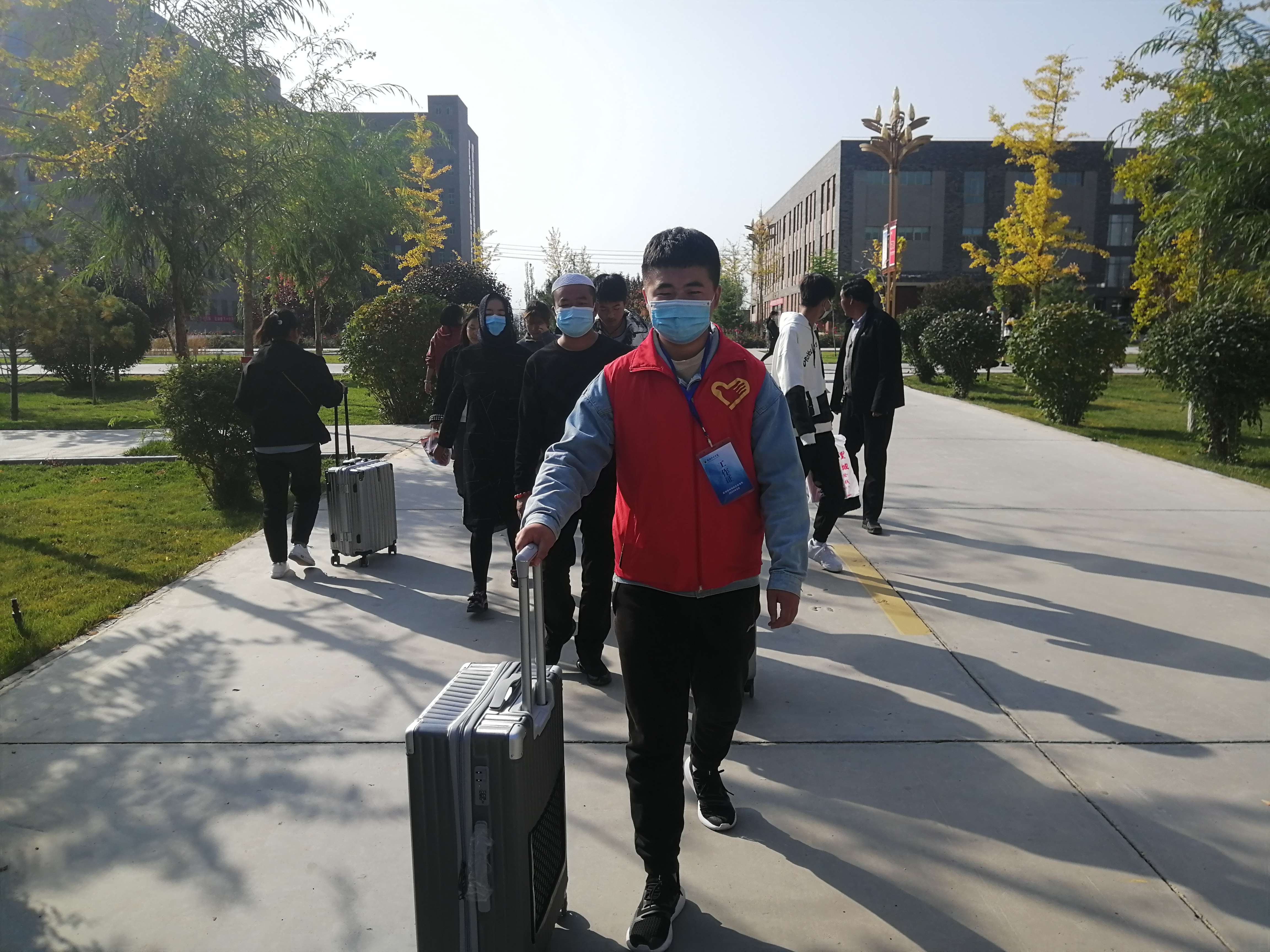 此次迎新活動(dòng)由我系黨委書記黃文源老師和團(tuán)委書記石瑞山老師親自指導(dǎo),學(xué)生會(huì)成員與分團(tuán)委成員的配合,我系于2020年10月9日至11日展開了迎接新生活動(dòng),提著行李,推著箱子,那一張張青春的面容,充滿了對(duì)大學(xué)的好奇和向往。寢室樓里來回穿梭的身影是早在樓下等待幫新生搬動(dòng)行李的志愿者,揮灑的汗水在幫助新生的喜悅下顯得無比閃耀。