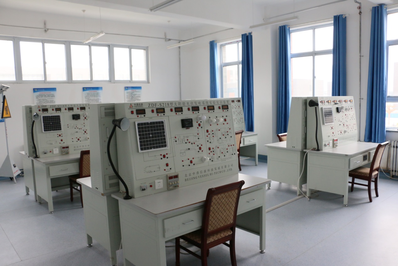 實(shí)訓(xùn)功能:本實(shí)訓(xùn)室擁有太陽能光伏發(fā)電系統(tǒng)實(shí)驗(yàn)裝置8套。主要服務(wù)課程為光伏發(fā)電技術(shù)分析與應(yīng)用、光伏材料的加工與檢測等。
