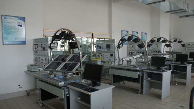 光伏光熱實訓室建立于2013年4月初,主要面向光伏發(fā)電及應用技術、太陽能光熱技術專業(yè),是能源工程系的專業(yè)實訓室之一。室內(nèi)配有光伏產(chǎn)業(yè)鏈陳列柜、太陽能輻射觀測系統(tǒng)、太陽能氣象觀測系統(tǒng)各1套,太陽能熱水器實訓裝置2套,太陽能光伏發(fā)電系統(tǒng)應用平臺4套,太陽能光伏發(fā)電系統(tǒng)實訓裝置8套。該實訓室主要服務于我系《光伏發(fā)電技術分析與應用》、《太陽能資源利用與開發(fā)》、《光伏發(fā)電系統(tǒng)集成與施工》等專業(yè)核心課程。