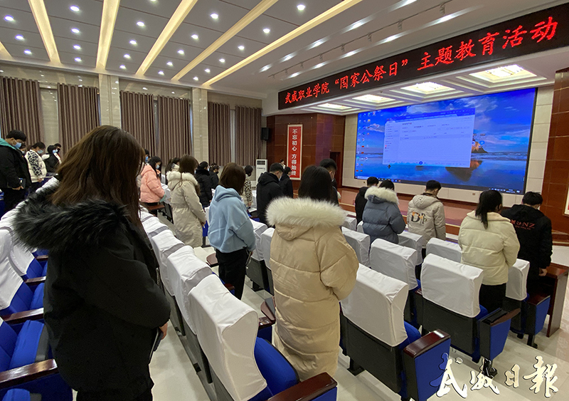 當(dāng)天各系組織開(kāi)展了國(guó)家公祭日主題團(tuán)日活動(dòng)。通過(guò)學(xué)習(xí)南京大屠殺相關(guān)歷史知識(shí)、講解國(guó)家公祭日設(shè)立的重大意義、進(jìn)行默哀儀式、共同宣讀《和平宣言》等形式表達(dá)對(duì)南京大屠殺遇難者的哀悼與哀思。12月14日《武威日?qǐng)?bào)》刊發(fā)了我院開(kāi)展國(guó)家公祭日主題教育活動(dòng)新聞報(bào)道。