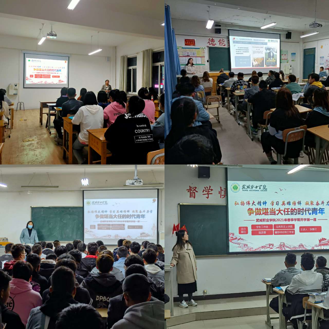 授課圍繞“弘揚脫貧攻堅精神,激發(fā)建功強大動力”、“學(xué)習(xí)戍邊英雄事跡,匯聚強國磅礴力量”、“遵守國家規(guī)定要求,筑牢疫情防控防線”和“牢固樹立安全意識,切實維護校園安全”四個方面展開,授課教師和同學(xué)們一起全面分享了脫貧攻堅取得的偉大成就和衛(wèi)國戍邊英雄的感人事跡,并對常態(tài)化疫情防控工作和學(xué)校安全工作做了細致講解。旨在激勵廣大學(xué)生弘揚脫貧攻堅精神,厚植愛國戰(zhàn)斗情懷,并使同學(xué)們更好地適應(yīng)學(xué)校學(xué)習(xí)生活,遵守常態(tài)化疫情防控制度和學(xué)院各項規(guī)章制度,以保證新學(xué)期教育教學(xué)工作平穩(wěn)有序開展,保證全院長期安全穩(wěn)定。
