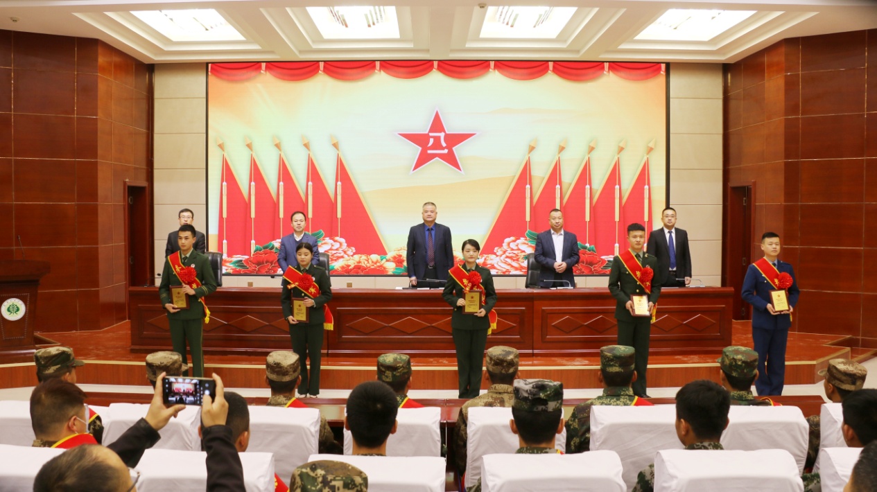 大會上,高鵬堂宣讀了2021年春季入伍學(xué)生名單和近兩年退役復(fù)學(xué)學(xué)生名單;參會領(lǐng)導(dǎo)為應(yīng)征入伍的12名新兵佩戴紅花,贈送紀念品,為退役復(fù)學(xué)學(xué)生代表佩戴紅花,頒發(fā)榮譽證書。
