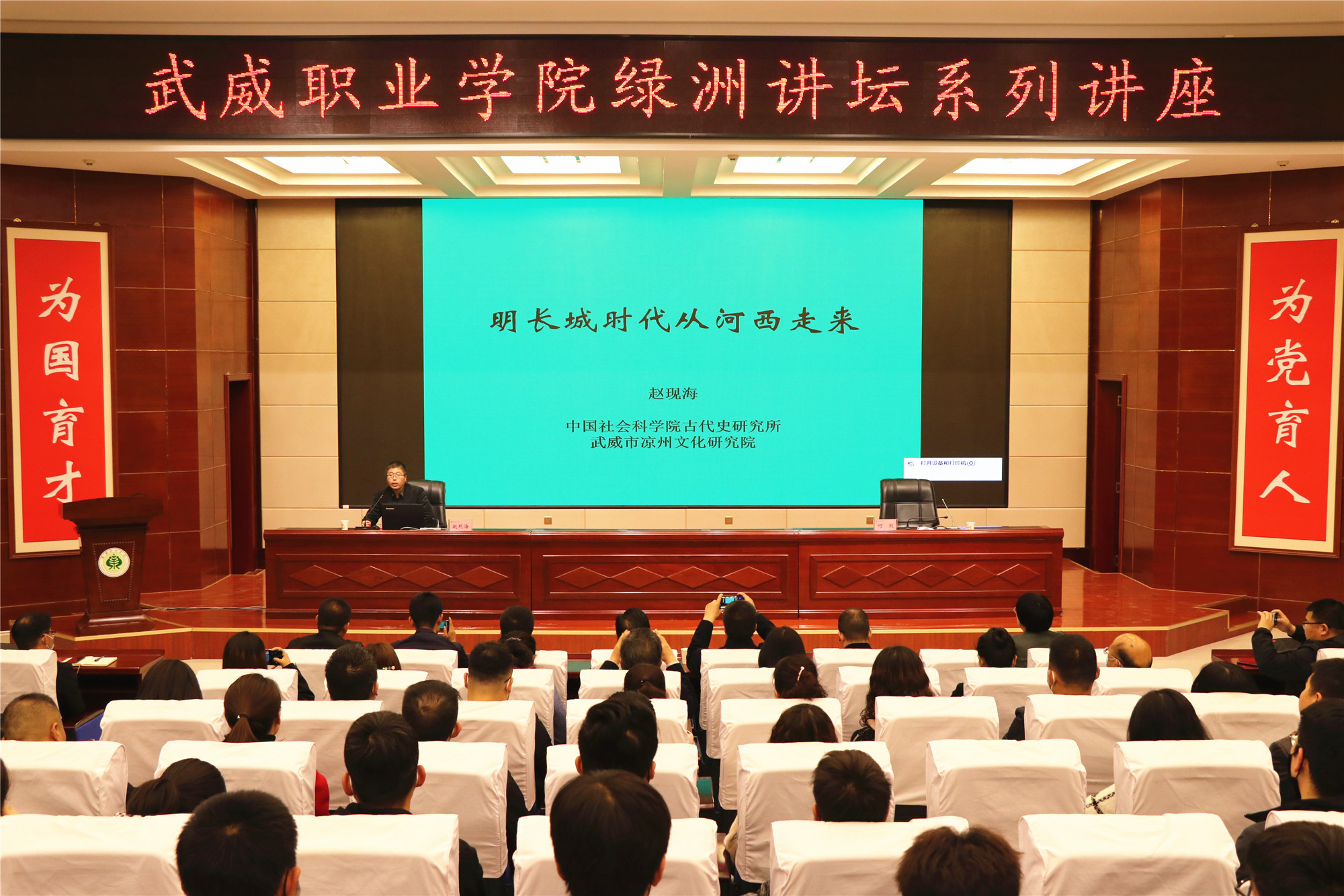 4月2日,學院綠洲講壇第40期開講,由中國社會科學院古代史研究所研究員,明史研究室主任,市涼州文化研究院副院長趙現(xiàn)海同志為師生進行《明長城時代從河西走來》的專題報告。學院領導、涼州文化研究院相關(guān)領導和工作人員,西關(guān)科技巷社區(qū)領導和學院師生代表220人參加了報告會。黨委委員、副院長何毅主持報告會。